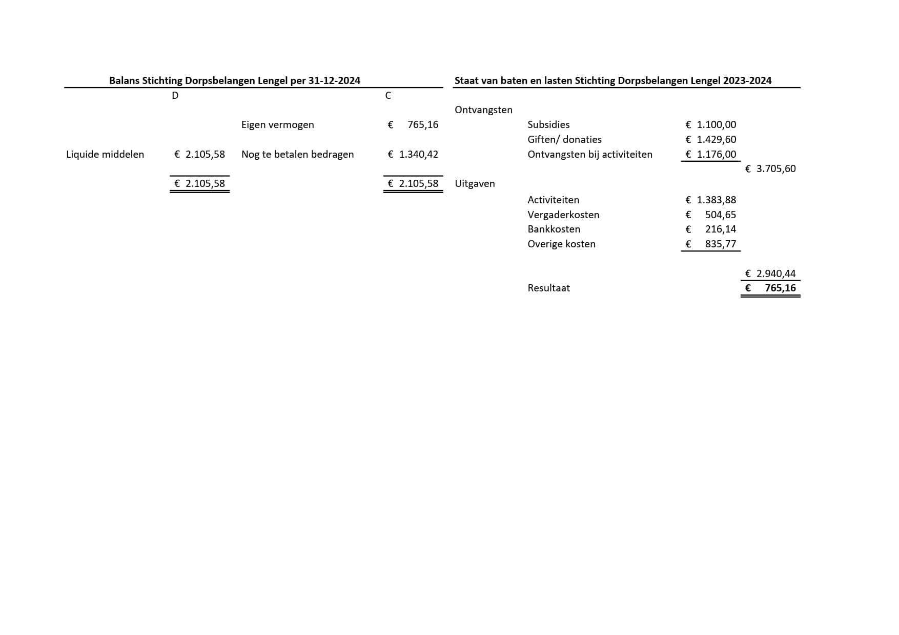 Balans Stichting Dorpsbelangen Lengel